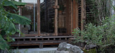拥有两间卧室。一面竖木条墙将空间分成两个主要的部分,一楼卧室的门也隐蔽其中。楼梯扶手是无框玻